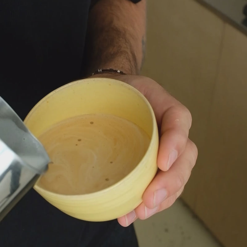 Set of 4 espresso cup Nomi Creme, grey stoneware clay with glossy interior and raw exterior finish.