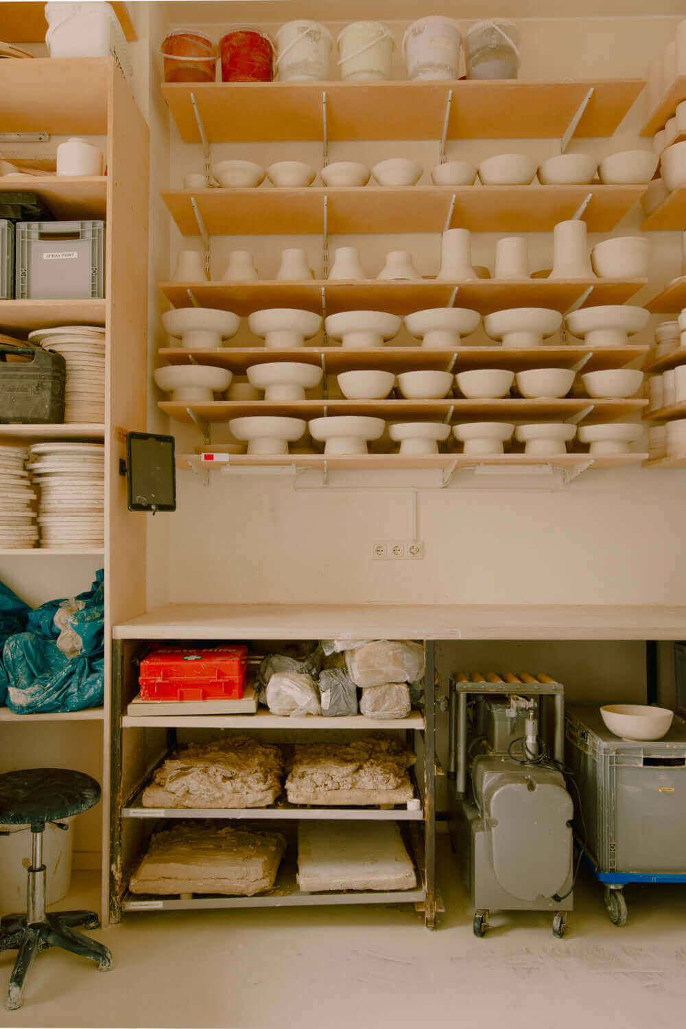 Jedes Stück wird in unserem Töpferatelier in Frankfurt von unserem sechsköpfigen Werkstatt-Team handgefertigt.
